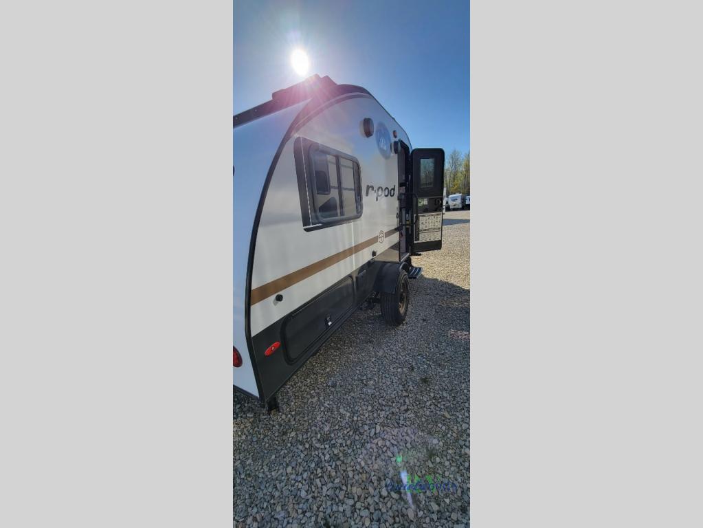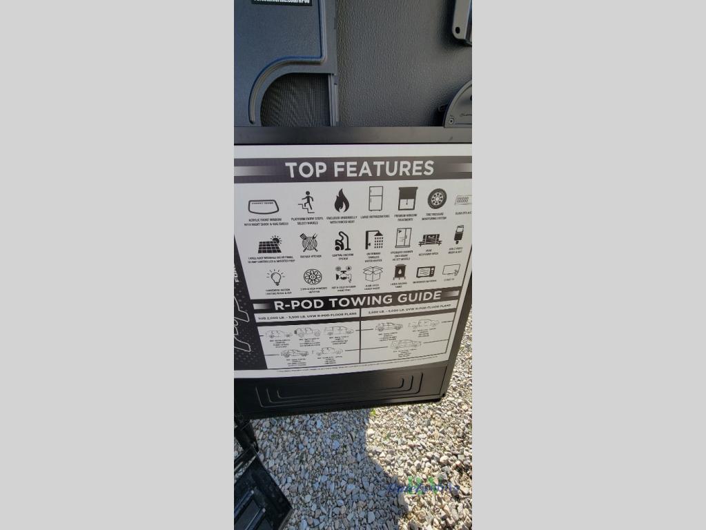 With any R-Pod travel trailer by Forest River, you will enjoy affordable luxury at the lowest tow weight in its class! There is a sealed underbelly with forced heat, a curved dual-pane acrylic front window with a bug screen and night shade, plus a large roof mounted solar panel for off-grid capabilities. The 15K A/C unit will keep you comfortable during the summer camping months, and the tankless water heater will provide endless hot showers after hiking, biking, swimming and more! Each model also includes a black glass friction hinge entrance door, roof ladder prep, exterior motion lighting, plus a hot and cold exterior spray port to wash off sand from the beach. Inside, you'll enjoy seamless Surf-X kitchen countertops, blackout roller shades, and a central vacuum system for hassle-free cleaning!