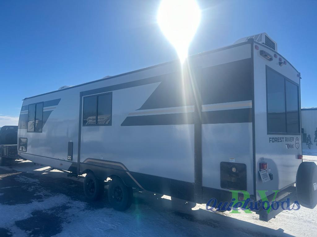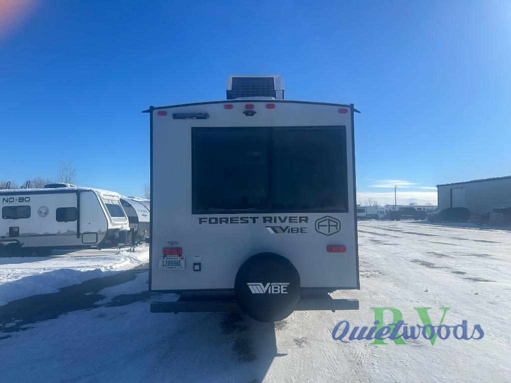 With any Vibe travel trailer by Forest River, you will enjoy comfort at every turn! There is a Norco huck-bolted steel frame, an enclosed underbelly with 12V heating pads, and a PVC roof membrane for added durability. You will also find a universal docking station outside, along with slam latch doors, European style square windows, and an automotive painted front cap. Head inside to enjoy the premium residential-style furniture, decorative window treatments, privacy shades in the living room and bedroom, and many more comforts!