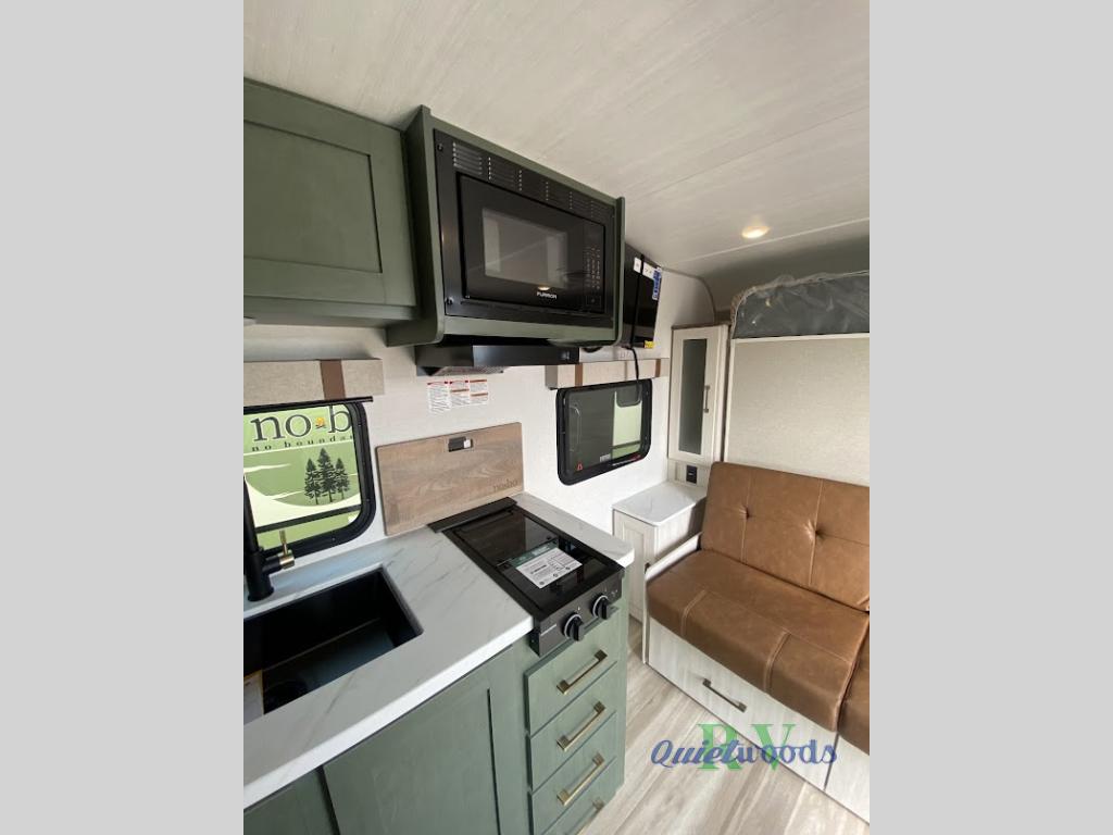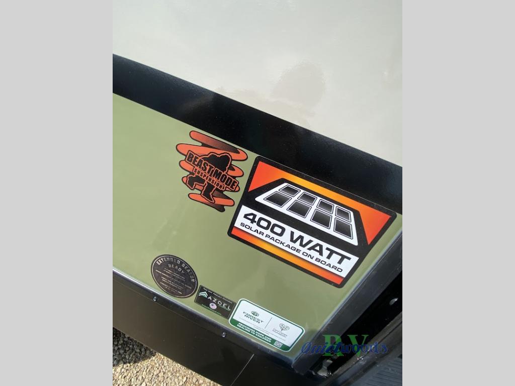 Take this No Boundaries travel trailer out for a no-stress weekend! You'll have a rear bathroom complete with a shower, toilet, vanity, and linen closet, and the kitchen comes with a pantry, microwave and air fryer plus a sink to help you stay on top of the daily meals. A booth dinette will provide a place to dine and play games in the evening, and an overnight guest can make their bed here. Up front, the Murphy bed can be set up for a great night's rest, and there are dual bedside wardrobes to keep your things tidy. When the optional Beast Mode Package on this model is chosen, you'll enjoy a 400-watt solar package, a fresh water filter, a Maxxair roof vent cover, plus a Beast Mode independent suspension for better handling.
