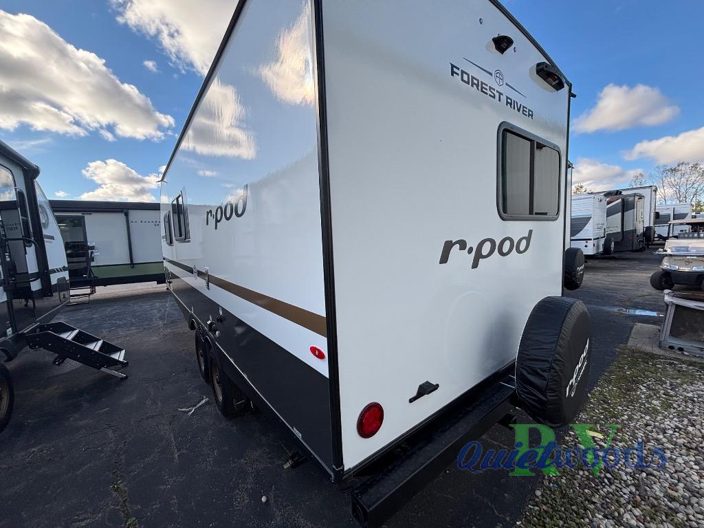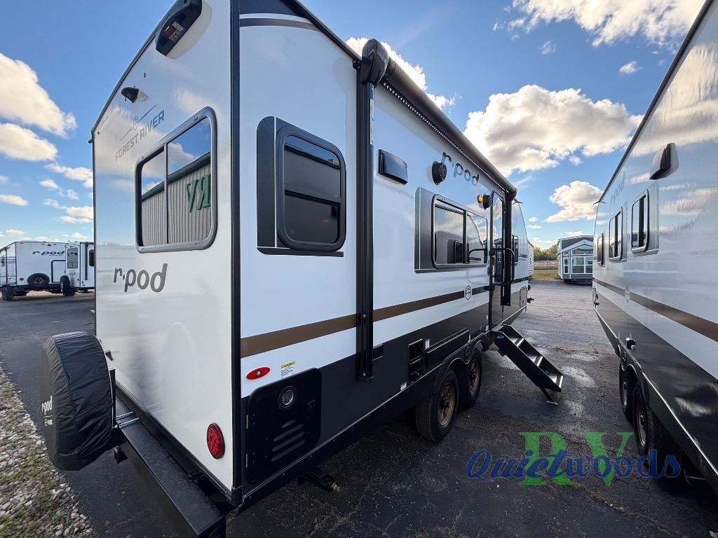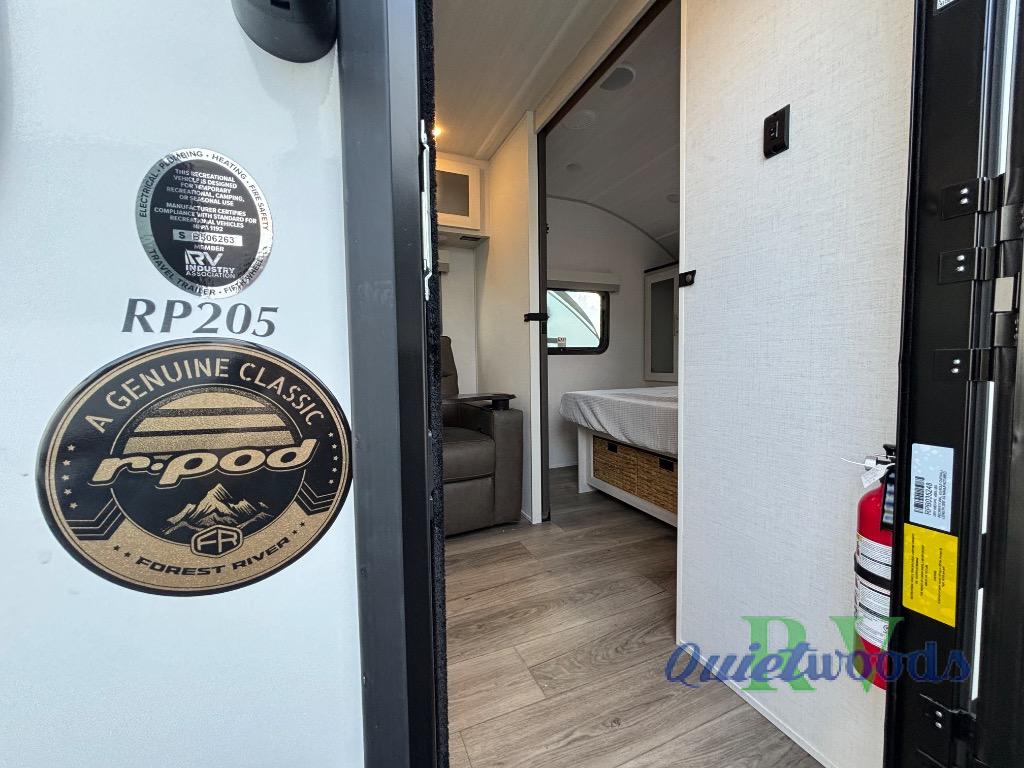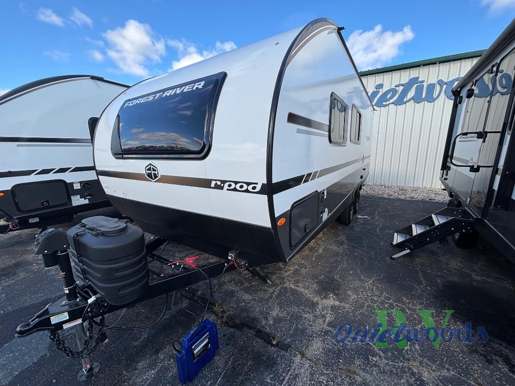 With any R-Pod travel trailer by Forest River, you will enjoy affordable luxury at the lowest tow weight in its class! There is a sealed underbelly with forced heat, a curved dual-pane acrylic front window with a bug screen and night shade, plus a large roof mounted solar panel for off-grid capabilities. The 15K A/C unit will keep you comfortable during the summer camping months, and the tankless water heater will provide endless hot showers after hiking, biking, swimming and more! Each model also includes a black glass friction hinge entrance door, roof ladder prep, exterior motion lighting, plus a hot and cold exterior spray port to wash off sand from the beach. Inside, you'll enjoy seamless Surf-X kitchen countertops, blackout roller shades, and a central vacuum system for hassle-free cleaning!