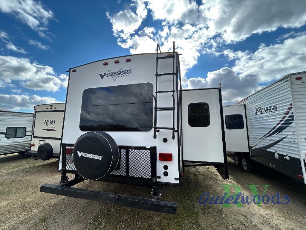 The V-Cross Platinum 30VSK travel trailer by Forest River offers triple slides and a rear living area.