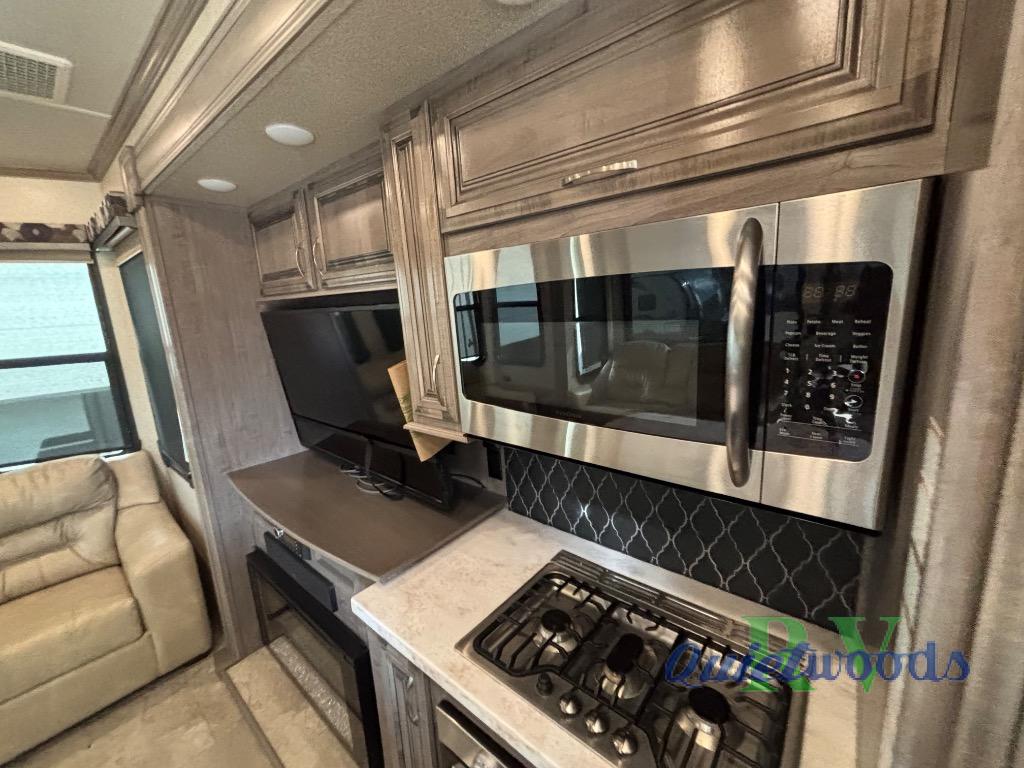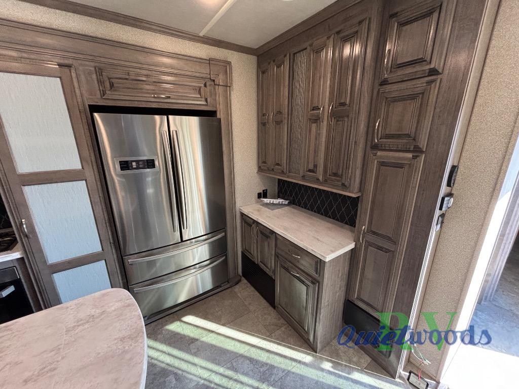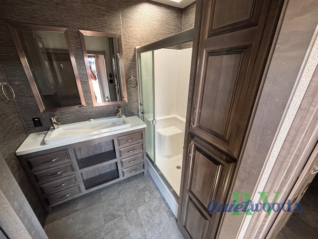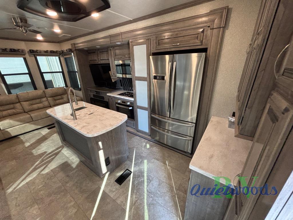 Imagine being at your ranch, farm or lake house with your own bedding, cooking amenities, and even a unique bathroom. You might even have a washer and dryer if you chose that option. If you enjoy cooking, the Chef's kitchen offers everything you will need plus a 20 cu. ft. double drawer residential refrigerator and a full pantry. The island includes an Infinity light medallion, and the kitchen's one-piece backsplash is attractive. You can relax or entertain in the living area, and stay cozy by the fireplace. The bathroom will impress you with the single drain sink including double faucets each time you wash your hands or brush your teeth. The "Champagne Dreamer" king bed mattress, the nine-drawer, tall boy dresser, and the make-up vanity desk allow you to relax and unwind each night. This is the one!