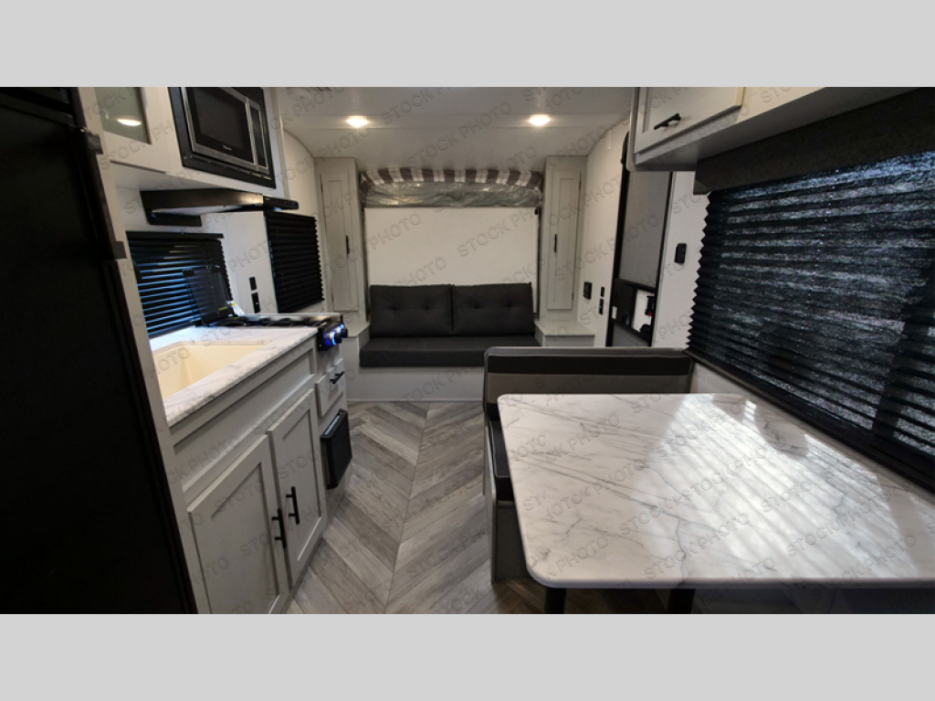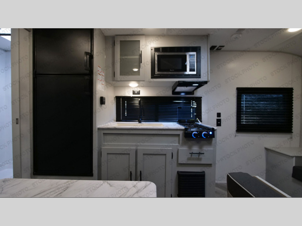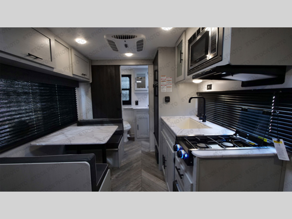 This compact travel trailer may only be 3,000 lbs. but it is still feature-packed! The front Murphy bed has a 60" x 74" queen bed to sleep on at night and a sofa with storage access to sit on during the day. Grab some eggs from the 11 cu. ft. frost free refrigerator then fry them up on the three burner cooktop and enjoy them at the booth dinette with a large window to look out at your beautiful scenery. Freshen up each morning in the full rear bathroom with the 36" x 24" shower and keep the dirt outside where it belongs with the outside shower with hot and cold water. There is even an outside 1.6 cu. ft. refrigerator to enjoy a cold beverage while relaxing underneath the 12' power awning!