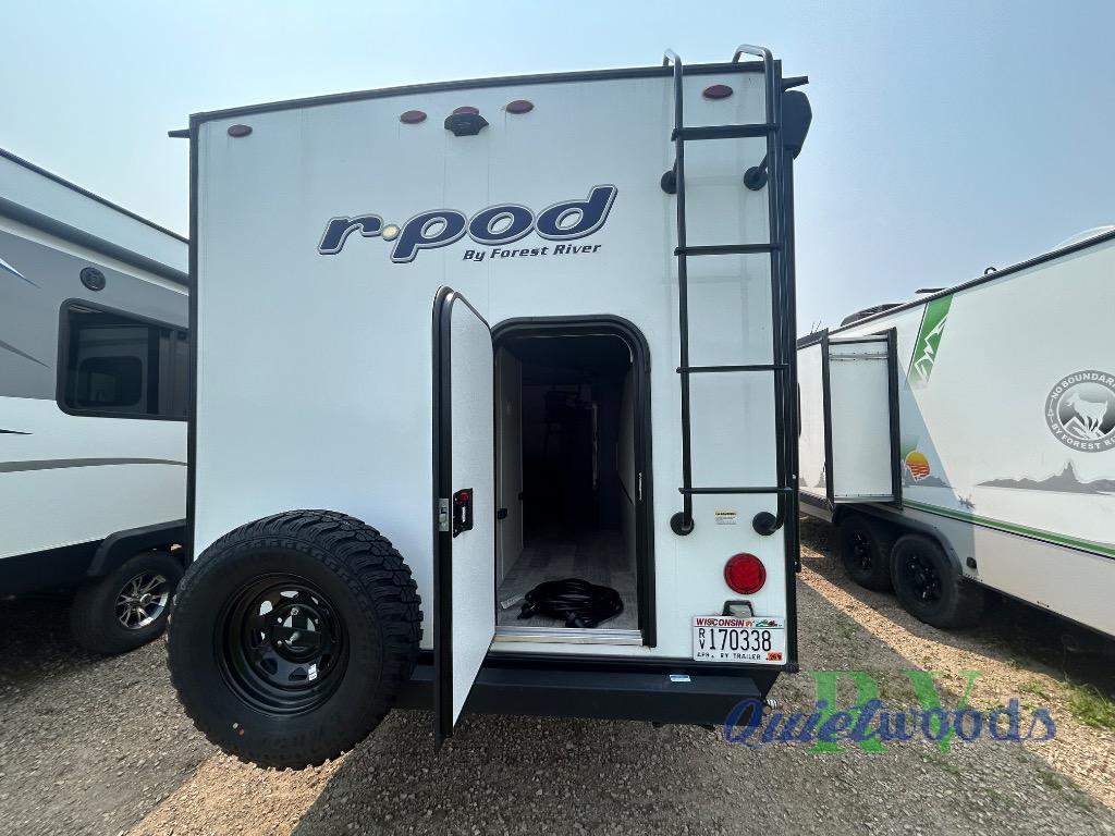 The Forest River R-Pod travel trailer is an excellent choice for lightweight towing! With convenient features like the Azdel composite panels that will completely withstand water damage and designer Carefree flooring that will make it easy to clean up messes, this is a great choice for easy living. The R-Pod has LED exterior lights, outside speakers, and self-adjusting brakes for convenience. Step inside to find decorative window treatments, shaker style cabinetry, seamless kitchen countertops, and a 6' 6" interior height to provide ample room to relax.